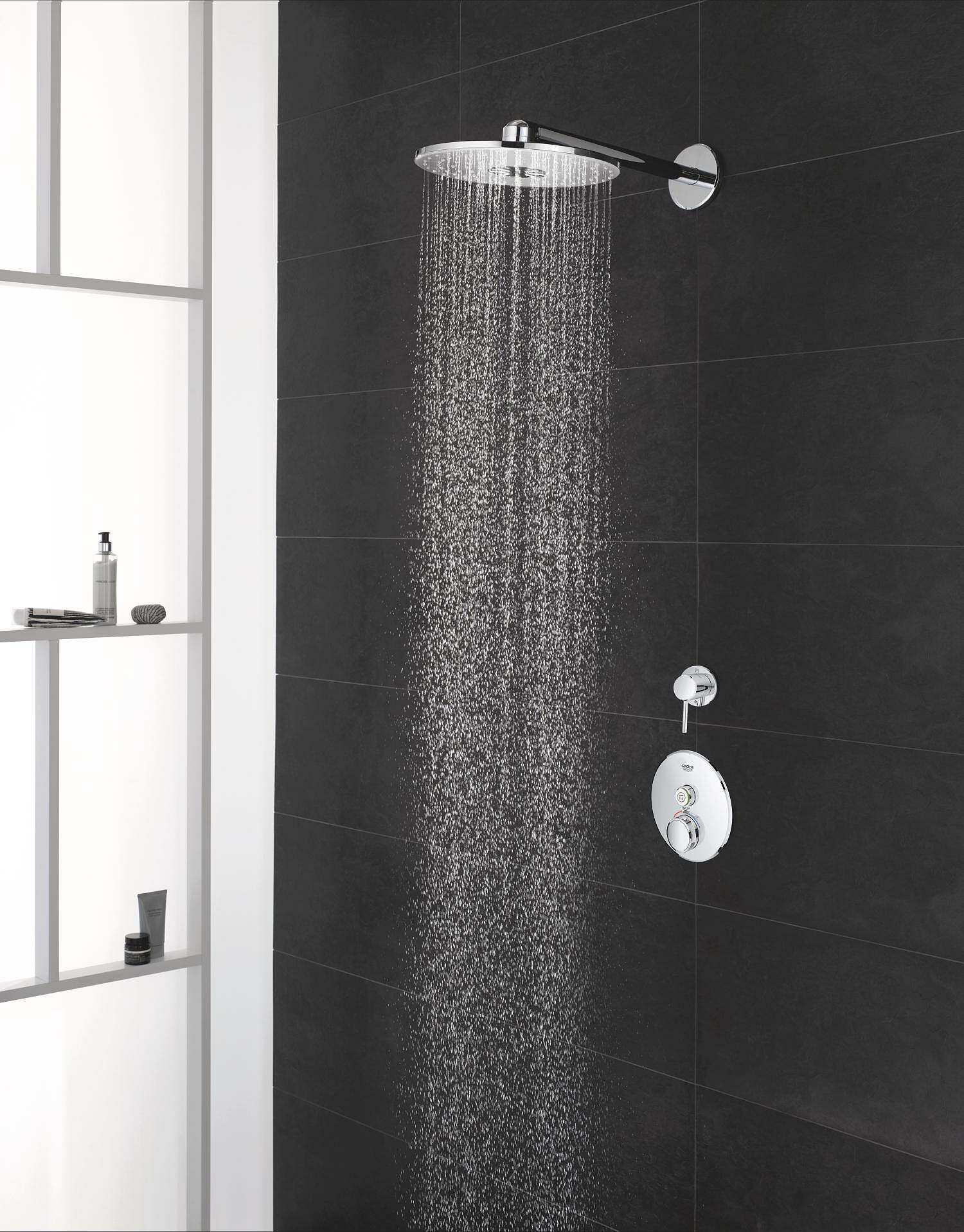 אביזרי אמבט מעוצבים מעצימים את חוויית המים – זרימה חלקה, רוגע מימי ועידון יוקרתי שממלאים את החדר! בדיוק כמו ראש מקלחת Euphoria 260 SmartControl מבית GROHE. ראש מקלחת עגול ומעוצב בקוטר 26 ס"מ עם שלושה מצבי זרימה מפנקים: מצב סילון (Jet) ממוקדת וחזקה לשטיפה ועיסוי ממריץ של הראש והצוואר, מצב "גשם חכם" (SmartRain) עם התזה רחבה לחוויה מרגיעה ומצב גשם (Rain) המפעיל את כל המתזים ומעניק כיסוי גוף מלא ומפנק. כל אלו, נשלטים באמצעות כפתור בורר מצבים חדשני ומרשים במרכז ראש המקלחת. בנוסף, ראש מקלחת Euphoria 260 SmartControl כולל גם ראש מפרק כדורי מסתובב 15°, מתזי סיליקון איכותיים SpeedClean לניקוי קל של האבנית, מגביל זרימה מובנה 9.5 ליטר/דקה GROHE Water Saving וטכנולוגיית Inner WaterGuide המונעת מראש המקלחת להתחמם. מגיע בגימור כרום ניקל סופר אלגנטי GROHE Long-Life.